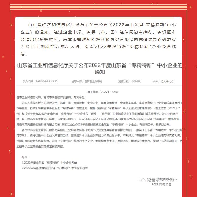 智通科技榮獲2022年度山東省“專(zhuān)精特新”企業(yè)榮譽(yù)稱(chēng)號(hào)